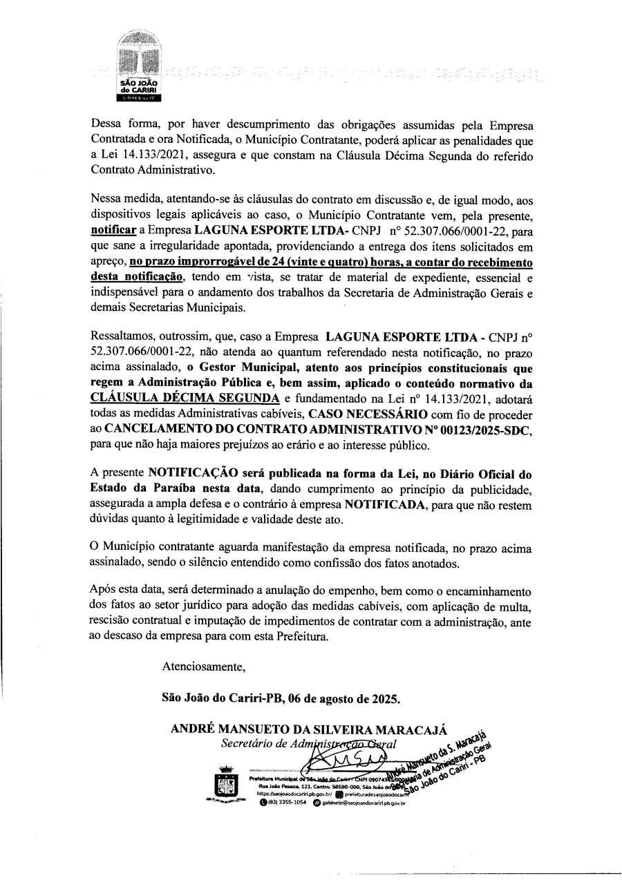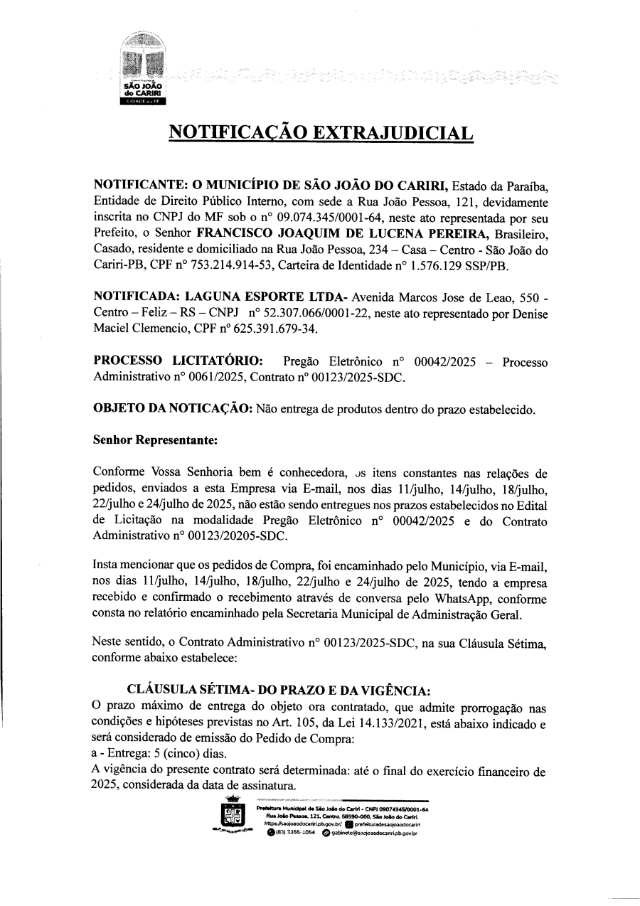 NOTIFICAÇÃO – LAGUNA ESPORTE LTDA