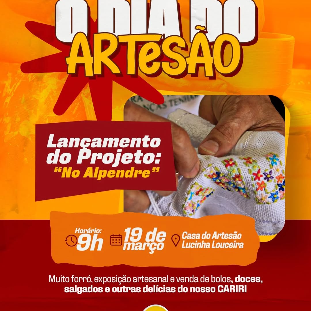 A programação especial incluirá o lançamento do projeto “No Alpendre”, uma iniciativa dedicada à valorização e promoção do trabalho artesanal. Os visitantes poderão desfrutar de apresentações de forró, explorar uma rica exposição de peças artesanais e saborear as delícias culinárias da nossa região do Cariri, com venda de bolos, doces, salgados e outras iguarias. A participação da comunidade é essencial para prestigiar e fortalecer aqueles que, a cada ponto e criação, preservam a essência da nossa cultura.